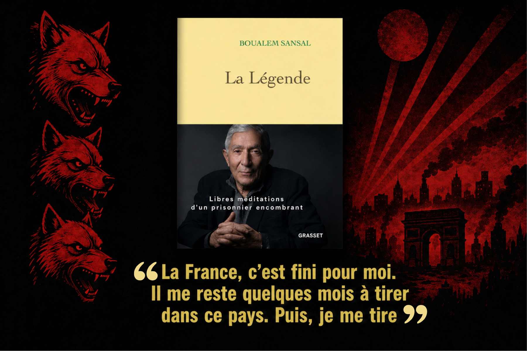En 1932, Louis-Ferdinand Céline publiait Voyage au bout de la nuit, livre-torche qui disait l’homme face aux ténèbres du siècle, à la guerre, aux foules, à l’absurde. Près d’un siècle plus tard, un autre voyage commence, non plus au bout de la nuit, mais au bout de la meute. Car c’est bien de cela qu’il s’agit aujourd’hui : une France où les hordes médiatiques ont remplacé les ténèbres céliniennes, où la chasse en bande tient lieu de débat, où l’on ne pense plus, on aboie en cadence. Boualem Sansal, à sa façon, accomplit ce voyage-là : il va au bout de la meute qu’on a lâchée autour de lui, il en mesure la gueule et les crocs, et il décide de ne pas attendre qu’elle se referme. S’il réalise effectivement ce qu’il a annoncé, il part à temps, lucide et intact, parce qu’il reconnaît l’air qu’il respire.