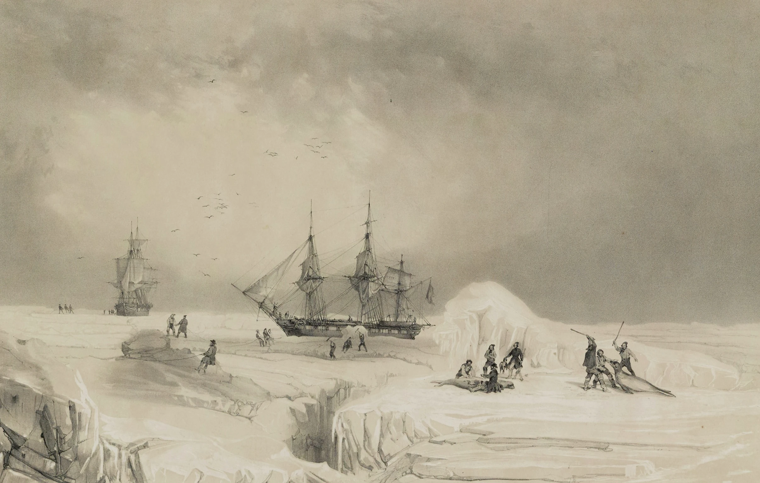 Nommé capitaine de vaisseau à son retour, Dumont d’Urville publie en 1834 son Voyage pittoresque autour du monde en trois volumes, récit grand public de ses tribulations exotiques. En 1837, il accepte de conduire une périlleuse circumnavigation dans les mers antarctiques avec l’Astrolabe et la Zélée. C’est le début d’une odyssée cauchemardesque. Bravant pendant trois ans tempêtes meurtrières, désertions, épidémies décimant ses équipages, Dumont d’Urville atteint en 1840 un continent de glace qu’il baptise Terre Adélie. Un exploit héroïque salué à son retour triomphal en France par une promotion au grade de contre-amiral.
