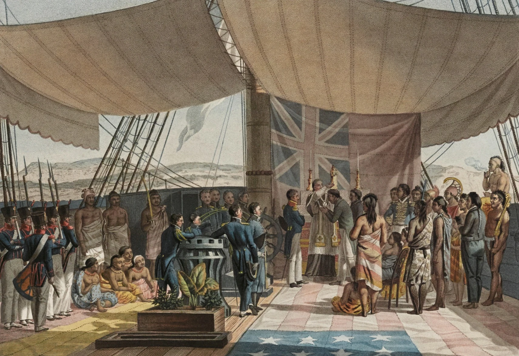 S’entourant des meilleurs scientifiques, dont le pharmacien Lesson, Duperrey embarque également des aliments appertisés, technologie récente permettant d’éviter le scorbut. En 1822, cap au sud : Horn, Brésil, Chili où Duperrey observe une insurrection indépendantiste. Puis direction les Tuamotu avant de déchanter à Tahiti, dévastée par l’influence des missionnaires anglais.